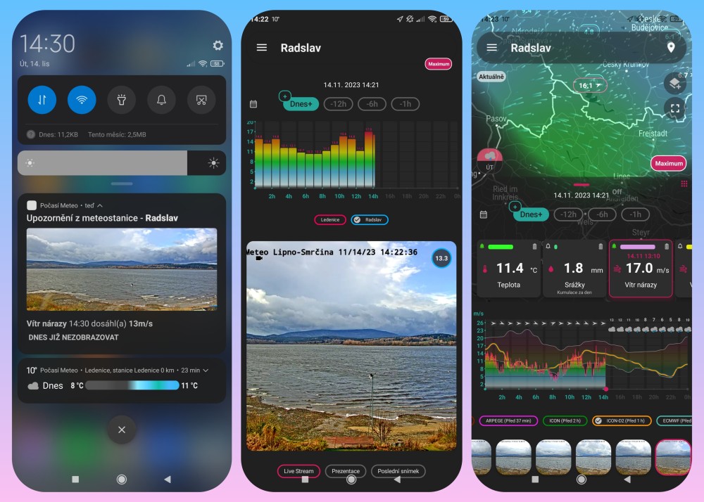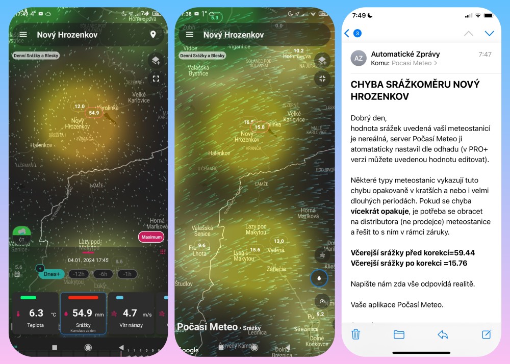 METEO blog Tipy, rady a zajímavosti Aplikace Počasí Meteo stále přichází s novými funkcemi Aplikace Počasí Meteo stále přichází s novými funkcemi 02. 09. 2025 Již 3x jsme v minulosti na našem blogu psali o aplikaci Počasí Meteo pro OS Android: 6 novinek v nejlepší mobilní aplikaci pro Android (15.2.2023) Počasí Meteo je český klenot mezi aplikacemi (28.6.2022) Počasí Meteo - pro ty, kteří chtějí vědět více (27.2.2021) Dnes bychom chtěli upozornit především majitele meteostanic na funkce, které v jiných aplikacích jen tak nenajdete a na závěr přidáme i pár novinek, které autoři v aplikaci přidali během posledních měsíců. AUTOMATICKÁ KOREKCE CHYB SRÁŽKOMĚRŮ METEOSTANIC Některé meteostanice občas vykazují chybu srážkoměru, která se projevuje nereálnou hodnotou srážek, což vede k tomu, že na serverech typu Wunderground, Weathercloud jsou u tisíců meteostanic zcela nereálné údaje. A že se nejedná o zanedbatelné chyby je vidět i z ukázky automatické korekce. V aplikaci Počasí Meteo je dále možnost i uživatelské editace jakékoliv chyby meteostanice způsobené např. výpadkem proudu, internetu, výměnou baterií atd. DOPLNĚNÍ CHYBĚJÍCÍCH METEO DAT Kromě editace chybných dat je k dispozici i doplnění dat v době kdy meteostanice data do internetu neposílala. Co je nám známo, tak tuto funkci žádné jiné aplikace pro mobilní telefony nenabízí. MOŽNOST ZOOMOVÁNÍ DISPLEJE (Pinch-To-Zoom) Zoomování dvěma prsty se hodí nejen pro uživatele s brýlemi a její ovládání je velmi jednoduché, stačí dotyk displeje palcem s ukazováčkem pro oddálení nebo přiblížení, zpět pak dvojité poklepání a nebo tlačítko zpět. Realizováno na předpovědi počasí i na informacích z meteostanice (roletku je nutno potáhnout tak, aby nebyla vidět mapka, která má zoomování samostatné). VÝBORNÉ PROVÁZÁNÍ METEOSTANICE S WEBKAMEROU Kromě synchronizace údajů meteostanice se snímky s webkamery je k dispozici integrace aktuálních snímků do widgetu meteostanice, slideshow snímků s časovým razítkem se zoomem a možným ukládáním snímků, denní video slideshow včetně historie s případným sdílení na sociálních sítích či ukládáním na disk, on-line video stream a volba snímku jako podklad pro rychlý přehled o počasí. Pro majitele meteostanic a webkamer je navíc k dispozici služba externího serveru, která bezplatně umožňuje posílat snímky na cloud a za mírný poplatek i do snímků vkládat overlay z údajů vlastní meteostanice. VYLEPŠENÝ WIDGET METEOSTANICE A RADAR-SATELITNÍ WIDGET Uživatel aplikace si může nakonfigurovat widgety podle svých požadavků a navíc je k dispozici i zmenšení widgetu až na velikost 1x1, což umožňuje zobrazení i jedné nejvíce sledované meteoveličiny a integraci widgetu mezi ikony aplikací. A jaké novinky ocení nejen majitelé meteostanic? PRAVDĚPODOBNOST SRÁŽEK Pravděpodobnost srážek (volba viz. menu Nastavení) vychází z předpovědi počasí modelu ECMWF, která představuje rozsah budoucích možností počasí. Probíhá 20 simulací, každá s mírnou obměnou svých počátečních podmínek a s mírnou obměnou svých počátečních podmínek a s mírně narušenými modely počasí. Tyto variace představují nevyhnutelnou nejistotu v počátečních podmínkách a aproximacích v modelech. Tím vytvářejí řadu možných povětrnostních podmínek a z toho vychází pravděpodobnost srážek (pozn. srážky pod 0.1 mm jsou chápány jako srážky nulové). PUSH NOTIFIKACE BLÍŽÍCÍCH SE SRÁŽEK O push notifikacích jsme psali již minule, nyní jsou tyto notifikace doplněný též o predikci srážek. Máte mobil v kapse, aplikaci Počasí Meteo vypnutou a blíží srážky. Naštěstí máte v nastavení aplikace povolená oznámení a čas, kdy smí přijít, takže vás telefon včas upozorní i s uvedenou informací. Oznámení platí vždy pro aktuálně vybranou lokalitu. PŘEDPOVĚĎ BOUŘEK U meteomodelů GFS, WRF, (od verze 5.5.1 i ICON EU, ICON DE) a MASTER je k dispozici předpověď bouřek. V menu nastavení je možné si bouřky aktivovat i jako samostatnou řádku tabulky. Související produkty (7) Související produkty7 Rychlé info Novinka GARNI GTway Plus - WiFi brána Skladem 2 ks 2 289 Kč 1 891,74 Kč bez DPH Do košíku Rychlé info GARNI 2060 Arcus - Wi-Fi met. stanice s 24hod/7denní předpovědí Počet hvězdiček je 5 z 5 Skladem 2 ks 7 289 Kč 6 023,97 Kč bez DPH Do košíku Rychlé info GARNI 2055 Arcus - samostatná vnitřní jednotka Na dotaz 4 999 Kč 4 131,40 Kč bez DPH Do košíku Rychlé info GARNI 3055 Arcus – WiFi meteostanice Skladem 2 ks 10 985 Kč 9 078,51 Kč bez DPH Do košíku Rychlé info GARNI 2055 Arcus 2GEN - WiFi meteorologická stanice Počet hvězdiček je 5 z 5 Skladem 3 ks 8 889 Kč 7 346,28 Kč bez DPH Do košíku Rychlé info Garni 940 - Wi-Fi meteorologická stanice Počet hvězdiček je 5 z 5 Skladem 2 ks 4 698 Kč 3 882,64 Kč bez DPH Do košíku Rychlé info Novinka GARNI 1025 Arcus 2GEN - Wi-fi meteorologická stanice Skladem 3 ks 4 995 Kč 4 128,10 Kč bez DPH Do košíku Wi-Fi meteorologická stanice model GARNI 1025 Arcus s integrovaným bezdrátovým čidlem 7-v-1, která je vybavena mnoha funkcemi shromažďuje… PředchozíDalší Sdílet Tweet Pin It