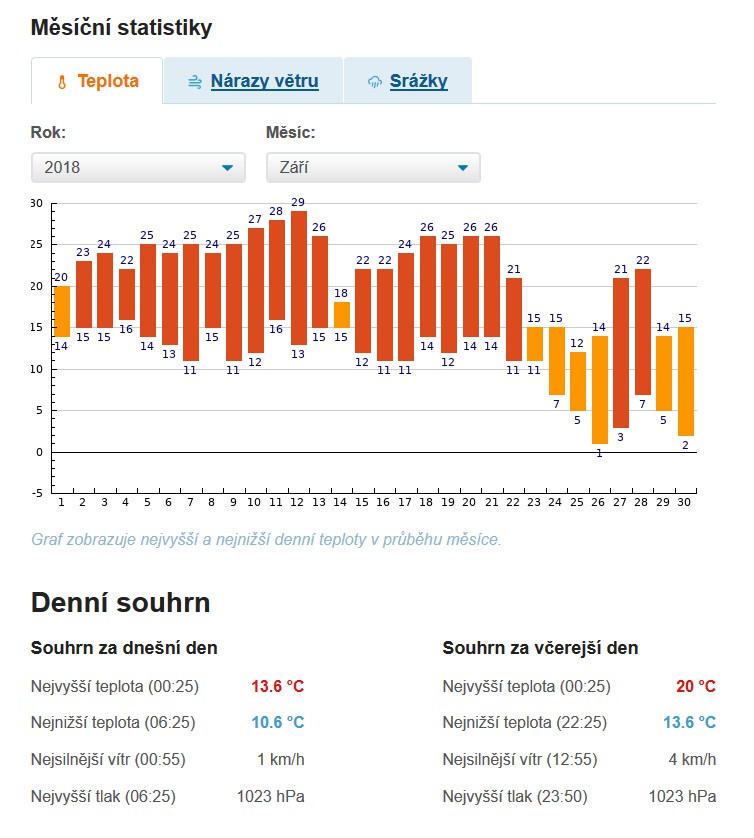 METEO blog METEOTIP #3: Jak na sdílení meteodat na internetu - In-počasí.cz METEOTIP #3: Jak na sdílení meteodat na internetu - In-počasí.cz 02. 09. 2025 S tím, jak trávíme více a více času na internetu, roste potřeba mít svá meteo data též online či je přímo sdílet i s ostatními. Jako nejjednodušší způsob se nabízí publikovat data do různých meteo sítí (weatherlink.com, wunderground.com, weathercloud.net atd.). V tomto článku se budeme výhradně věnovat asi nejpopulárnější (soudě dle zpětné vazby našich zákazníků) webové síti stanic u nás v ČR – In-počasí cz. Soukromých stanic uveřejněných na In-počasí je kolem 200, profesionálních pak kolem 30\. Ty profesionální jsou nejčastěji s obsluhou a měření tam probíhá velmi kvalitně. U profesionálních stanic jsou k dispozici data i za více než 50 let. To samozřejmě již umožňuje zkoumat vývoj klimatu v daných lokalitách. Informace o počasí (zpravidla teplota, vlhkost, srážky, tlak, směr a rychlost větru) jsou stahovány každých 30 minut a vše je zobrazováno na webu projektu. Ačkoliv by se mohlo zdát, že celkový počet meteostanic není nijak vysoké číslo (existují u nás i meteo sítě s vyšším počtem míst měření), je nutné brát v potaz i to, že ne každá stanice je zařazena do databáze provozovatele. Je to případ od případu - po nějakou dobu (nejčastěji jeden až dva týdny) administrátoři prověřují kvalitu samotného měření. Zkoumají, jestli například stanici neovlivňuje přímý sluneční svit - čára denního průběhu teploty za zcela jasného dne by na grafu měla být co nejvíce hladká. Pokud je "zubatá" (jsou v ní rychlé poklesy a výstupy), je měření nejspíše ovlivněno přímým slunečním svitem a takovou stanici potom do svého přehledu nepřidají. Pokud tedy máte vlastní kvalitní meteostanici s připojením k internetu a chcete svá meteodata sdílet, tak ji můžete zkusit přidat i do In-počasí. Data z vaší meteorologické stanice budou poté automaticky zpracovávaná, archivována a zobrazována na tomto serveru, v aplikacích In-počasí nebo na serverech partnerů této meteosítě. Pro přidání stanice je nutné, aby stanice data zasílala někam na internet (byla přístupná přes protokol http nebo https). Data ze stanice umí In-počasí zpracovat většinou z libovolného formátu, nejlepší je ovšem JSON nebo CSV ve tvaru například: |11.09.11|21:17|22,9|69|1010,2|1,3|207|0,0|2,1|, vysvětlení: |datum|čas|teplota|vlhkost|tlak|rychlost větru v m/s (maximální náraz za 30 minut)|směr ve stupních|dnešní srážky (od půlnoci)|průměrná rychlost větru za 10 minut v m/s|). Velkou výhodou je též i to, že pokud již máte data na nějaké jiné meteo síti (např. wunderground.com či weatherlink.com), tak není třeba připravovat nové datové podklady, neboť provozovatelé In-počasí si umí meteo data stahovat i z těchto "konkurenčních" meteosítí. Pokud máte data v jiné meteo síti, pak je nutné se zeptat provozovatele daného serveru, jestli poskytuje výstupy v čitelných formátech (nejčastěji JSON). Měl by to být standard, ale některé sítě tuto možnost nenabízí. Pro přidání stanice je třeba kontaktovat provozovatele přes e-mail info@in-pocasi.eu. Nezapomeňte uvést: umístění stanice, jméno a příjmení, typ stanice, umístění čidel vzhledem k okolnímu terénu, adresu stránky s výstupem dat a fotografii stanice. Data ze stanic se zobrazují na mapě stanic a v aplikaci In-počasí na Android a iOS. V mobilních aplikacích se data zobrazují vždy pro konkrétní lokalitu. Pokud tak třeba bydlíte v Rokycanech, nainstalujete si zde stanici a začnete odesílat data na In-počasí, zobrazí se údaje ze stanice i v aplikaci, kde je můžete sledovat spolu s předpovědí pro dané místo. Spousta lidí oceňuje i to, že data ze stanice vidí také ve widgetu na ploše, který aplikace nabízí. Související produkty (14) Související produkty14 Rychlé info GARNI 2055 Arcus 2GEN - WiFi meteorologická stanice Počet hvězdiček je 5 z 5 Skladem 3 ks 8 889 Kč 7 346,28 Kč bez DPH Do košíku Rychlé info Novinka GARNI 1025 Arcus 2GEN - Wi-fi meteorologická stanice Skladem 2 ks 4 995 Kč 4 128,10 Kč bez DPH Do košíku Wi-Fi meteorologická stanice model GARNI 1025 Arcus s integrovaným bezdrátovým čidlem 7-v-1, která je vybavena mnoha funkcemi shromažďuje… Rychlé info -20 % 20 let TFA 35.8003.01 - bezdrátová WiFi meteostanice VIEW PRO Skladem 5 ks a více 3 990 Kč 4 990 Kč 3 297,52 Kč bez DPH Do košíku WiFi meteostanice s chytrou předpovědí a možností vzdáleného sledování naměřených hodnot pomocí mobilní aplikace TFA VIEW. Měření teploty,… Rychlé info GARNI 2060 Arcus - Wi-Fi met. stanice s 24hod/7denní předpovědí Počet hvězdiček je 5 z 5 Poslední kus skladem 7 289 Kč 6 023,97 Kč bez DPH Do košíku Rychlé info GARNI 2040 Arcus 2GEN - Meteorologická stanice s 24hodinovou /10denní předpovědí Skladem 2 ks 7 490 Kč 6 190,08 Kč bez DPH Do košíku Rychlé info GARNI 1085 Arcus - Wi-fi meteorologická stanice s 6denní předpovědí Počet hvězdiček je 5 z 5 Skladem 2 ks 6 889 Kč 5 693,39 Kč bez DPH Do košíku Rychlé info Novinka GARNI GTway Plus - WiFi brána Skladem 2 ks 2 289 Kč 1 891,74 Kč bez DPH Do košíku Rychlé info GARNI 3055 Arcus – WiFi meteostanice Skladem 2 ks 10 985 Kč 9 078,51 Kč bez DPH Do košíku Rychlé info GARNI 3015 Arcus 2GEN - Wi-Fi meteorologická stanice Skladem 2 ks 9 989 Kč 8 255,37 Kč bez DPH Do košíku Rychlé info GARNI 2055 Arcus - samostatná vnitřní jednotka Na dotaz 4 999 Kč 4 131,40 Kč bez DPH Do košíku Rychlé info 6242EU - Meteostanice Davis Vantage Vue - konzole Weatherlink Poslední kus skladem 18 990 Kč 15 694,21 Kč bez DPH Do košíku Rychlé info GARNI 1025 Arcus - pouze vnitřní jed