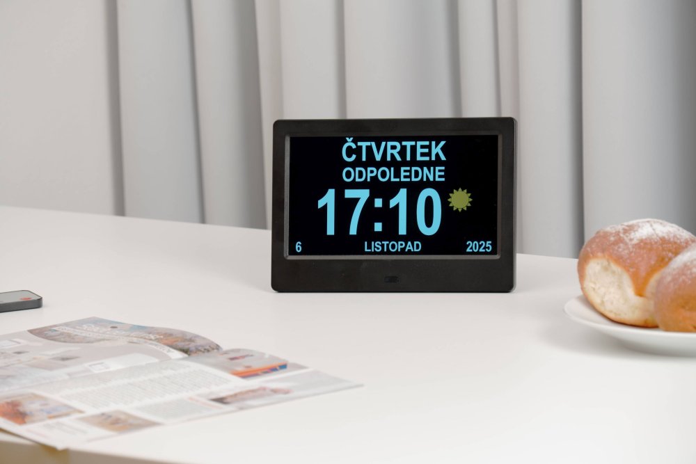 Hodiny Airbi NOTE - hodiny s kalendářem, textovými upozorněními a fotorámečkem Hodiny Airbi NOTE - hodiny s kalendářem, textovými upozorněními a fotorámečkem Airbi NOTE - hodiny s kalendářem, textovými upozorněními a fotorámečkem hvězda 1hvězda 2hvězda 3hvězda 4hvězda 5 (6) Počet hvězdiček je 5 z 5 PředchozíDalší Další fotky (13) PředchozíDalší Přidat do oblíbených Přidat do porovnání Novinka 1 199 Kč s DPH Na dotaz Sledovat dostupnost ks Do košíku EAN: 8594162601110 Kód produktu: BI1070 Doprava od 55 Kč Máte dotaz? Vojtěch Krejčí Produktový specialista +420 544 214 627 info@meteoshop.cz webový formulář K dispozici Po - Pá v čase 8-12,13-16 Popis Info o výrobci Recenze3 Články2 Diskuse0 Hledáte vhodné hodiny pro seniory? Airbi NOTE nejen pomůže ohlídat čas, ale díky propracovaným upozorněním pomůže i s denní rutinou a s tím, aby se nezapomnělo na důležité události. Jde o univerzální přístroj, který poslouží jako digitální hodiny s kalendářem a upozorněními nebo jako fotorámeček. Nejzajímavější funkcí Airbi NOTE jsou textová a zvuková upozornění. Můžete si nastavit různá upozornění (až 42), která se spustí v nastavený čas a připomenou něco, na co byste jinak mohli zapomenout. Na výběr z je z řady přednastavených textů nebo si můžete napsat vlastní. U upozornění lze nastavit i opakování v různé dny v týdnu (např. každé pondělí a středu ráno). V nastavený čas se ozve zvukové upozornění a zobrazí se určený text. Airbi NOTE se proto obvzláště hodí ke starším nebo nemocným osobám, kterým může pomoci s denní rutinou. Airbi NOTE vyniká podporou několika jazyků. Kromě češtiny je to slovenština, polština, maďarština, angličtina a němčina. Na displeji přístroje se stále zobrazuje čas, datum nebo část dne. Lze nastavit hlasové oznámení času v každou celou hodinu v nastaveném jazyce. Díky tomu všemu přístroj nadstandardně pomáhá s orientací v času. Nemusíte se bát, že by vás tato upozornění rušila, protože je lze nechat automaticky vypínat např. v noci. Vybrat si můžete různá zobrazení a rozložení obrazovky, displej může být orientovaný vodorovně nebo svisle. Ukázka různých rozložení displeje Airbi NOTE Airbi NOTE funguje i jako fotorámeček. Na Airbi NOTE si můžete zobrazovat fotografie nebo přehrávat videa z USB flash disku nebo SD karty (fotografie a videa se přehrávají pouze ve vodorovné orientaci displeje). Přístroj obsahuje i konektor na sluchátka nebo reproduktory pro lepší poslech zvuků a videí. Airbi NOTE se ovládá tlačítky na zadní straně nebo dálkovým ovladačem. Hodiny můžete postavit na podložku, např. na noční stolek, pomocí snímatelného stojánku, nebo je zavěsit na stěnu. Napájení je řešeno pomocí napájecího kabelu a adaptéru a zabudované záložní baterie, která uchová nastavení i ve chvíli, kdy je odpojený (např. pokud ho budete přenášet na jiné místo). hodiny, kalendář, část dne letní čas (nastavitelné) plná podpora 6 jazyků (čeština, slovenština, polština, maďařština, angličtina, němčina) hlasová oznámení času v celou hodinu (nastavitelné) zvukové a textové upozornění na různé události (lze nastavit až 42 upozornění) vybrat si můžete přednastavená upozornění nebo si napsat vlastní fotorámeček – zobrazuje fotky a přehrává videa z USB flash disku nebo SD karty vodorovná nebo svislá orientace displeje k postavení nebo zavěšení Technické parametry: Podporované formáty videa RM, RMVB, MKV, MOV, M4V, MPG, FLV, PMP, AVI, VOB Podporované formáty zvuku MP3 Podporované formáty obrázků JPG, JPEG Porty USB-A, SD karta, audio 3,5 mm jack(Mini-USB port slouží pouze pro aktualizaci firmware) Vlastnosti reproduktoru 8 Ω, 2W × 2 Napájení hodiny síťový adaptér (součástí balení, délka kabelu cca 1,5 m) Adaptér vstup 100–240 V AC, 50/60 Hz, 0,5 AMax Adaptér výstup 5 V DC, 2 A, 10 W Napájení dálkový ovladač 1x lithiová baterie CR2025 Rozměry hodiny 179 × 21 × 126 mm Váha hodiny 231 g (pouze přístroj) Rozměry dálkový ovladač 40 × 7 × 86 mm Váha dálkový ovladač 14 g (pouze přístroj) Výrobní společnost Bibetus s.r.o. Adresa Loosova 262/1, Brno 63800, Česká republika Email info@bibetus.cz Jana M.19. 01. 2026, 12:28 Ověřená recenze hvězda 1hvězda 2hvězda 3hvězda 4hvězda 5 Počet hvězdiček je 5 z 5 KladyNaprostá spokojenost KladyNaprostá spokojenost ZáporyZatím bez problémů ZáporyZatím bez problémů Pomohla Vám tato recenze? Ano (0) Ne (0) Kateřina R.09. 01. 2026, 14:38 Ověřená recenze hvězda 1hvězda 2hvězda 3hvězda 4hvězda 5 Počet hvězdiček je 5 z 5 KladyFunguje skvěle. KladyFunguje skvěle. Zápory Zápory Pomohla Vám tato recenze? Ano (0) Ne (0) Radek B.15. 10. 2025, 19:34 Ověřená recenze hvězda 1hvězda 2hvězda 3hvězda 4hvězda 5 Počet hvězdiček je 5 z 5 KladySuper. Dokonce po připojení na síť jsem zjistil že jsou nastaveny a nemusel jsem seřizovat čas 👍 KladySuper. Dokonce po připojení na síť jsem zjistil že jsou nastaveny a nemusel jsem seřizovat čas 👍 Zápory Zápory Pomohla Vám tato recenze? Ano (0) Ne (0) Ověřená recenze od zákazníka, který produkt zakoupil. Jak se měřil čas v historii a jak se měří dnes? Délka života, pracovní doba, volný čas - čas dělíme na mnoho typů. Nikdy jsme času nepřikládali větší důležitost než dnes, kdy se v našem životě stávají důležitými pojmy jako rovnováha mezi pracovním a soukromým životem nebo pomalé jídlo. Díky hektické a uspěchané době se zkrátka snažíme nakládat se svým časem mnohem více uvědoměle, než kdy dřív. Letní vs. zimní čas. Které argumenty nakonec zvítězí? Mělo to být naposled, co si zvykáme na posouvání ručiček o hodinu dopředu nebo